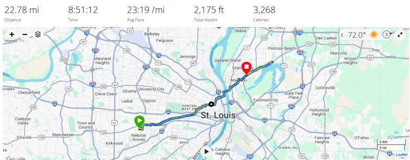 I started off around 3pm after work on Thursday from my house. I started walking east towards downtown St. Louis. I wanted to cross the McKinley bridge as it has a separated pedestrian walkway.
