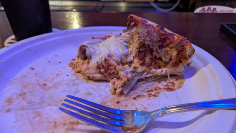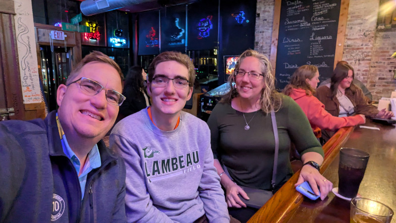 We celebrate any time Corvin makes it home to St. Louis after being away at college. With him being 22, going to bars is old hat. However, going with your parents is different. We went to Blackthorn Pub for some beer and pizza. Its very thick pizza.