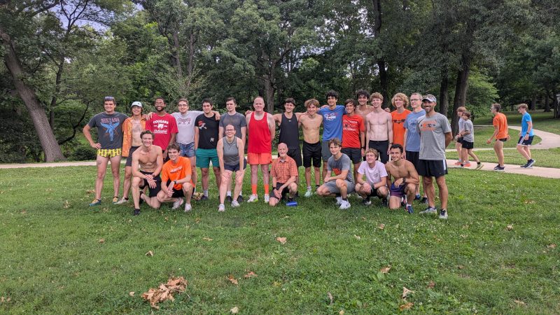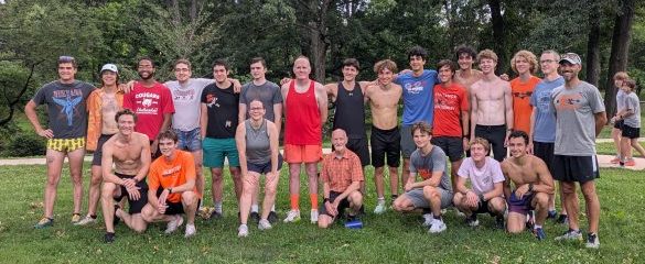 Part of the reason he came in town was to participate in the Webster Groves High School Alumni XC race. Here he is with other past alums.