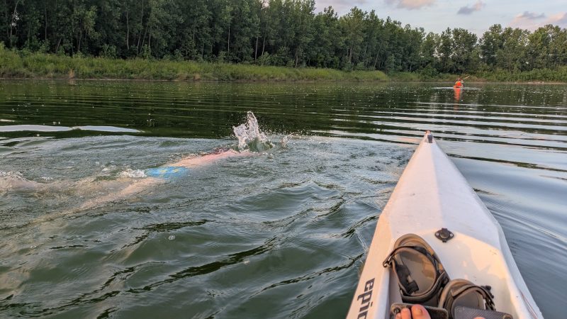 He is also training for his first IronMan race. He brought his bike home. We went out to a lake and Jackson Tar and I were safety boats while he got practice with open water swimming.