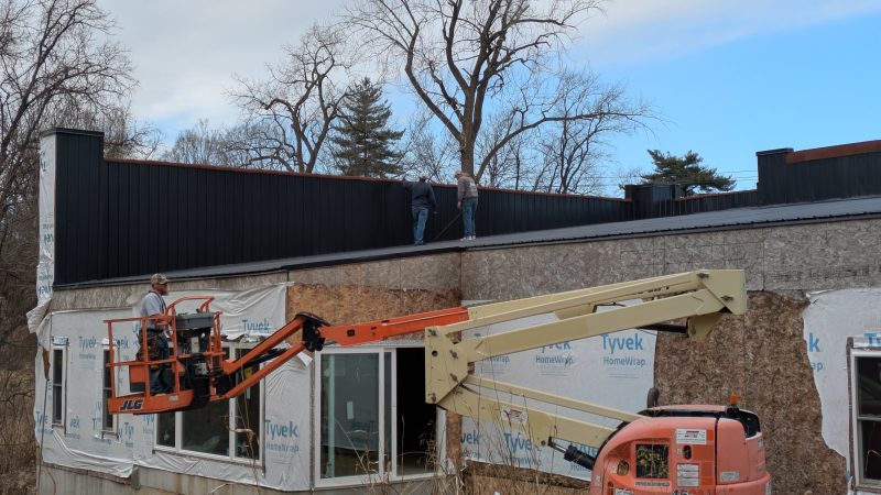 The builder rented a lift to get some exterior work done. They used it to get us up on the roof for an inspection with the roofer. Its crazy that we signed a contract for the roof in June of this year. Its now December and we’re just doing inspections to cover issues and get the leaks resolved.