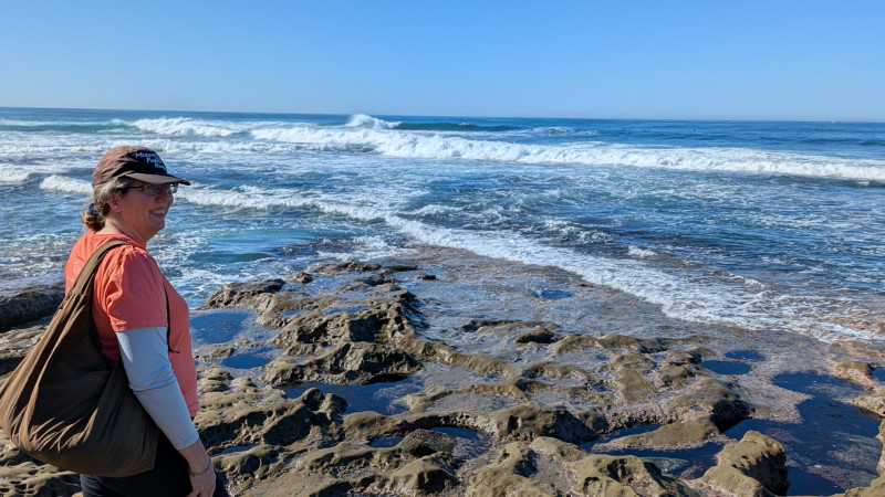 Day 4, our last full day in San Diego. We didn’t have anything that either of us felt we had to see before leaving. But we were not going to just sit idle all day. I was curious to see a slot canyon and I heard there was one north of where we had been. So off we went. This is just past La Jolla. Annie’s Slot Canyon was our destination inside the Nature Collective. Directions had us parking on a street in a residential neighborhood and quickly catching a walking trail. The trail was lovely and not too busy. The slot canyon part wasn’t exceptionally long, but just enough to really enjoy it.