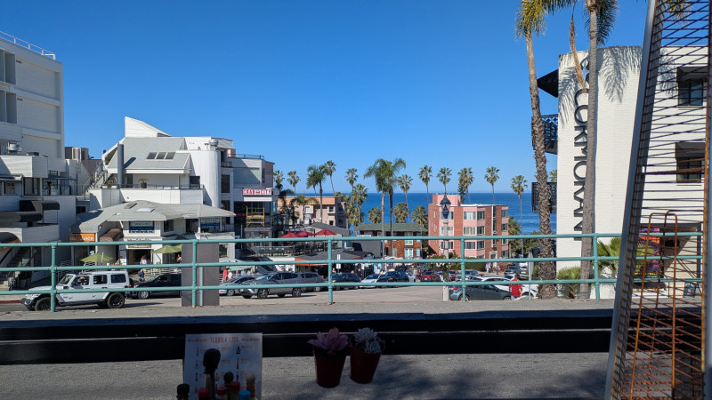 Like many other visitors there, we were transfixed at the nature in front of us. We watched a small bird run up and torment a seal pup before mom came around to get space. Then the bird would come at another angle. Eventually we got hungry and decided to go into town to get some lunch. We considered many places before settling on a restaurant with a patio. There was a wonderful view looking out onto the ocean that made it worth very penny of the cost. Okay, the photo doesn’t look like much, but it felt amazing to us!