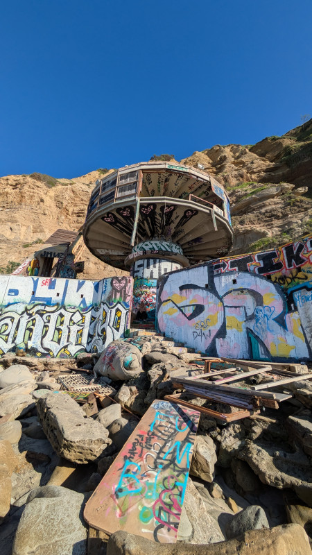 Shortly after this tide pool, Danelle wanted to relax on the beach and absorb the ocean view. We were near the mushroom house and I wanted to check it out. It has a long history and is currently in disrepair. It had several people in it when I visited.