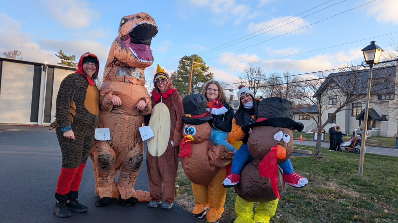 We convinced Kelly to come over and participate in the Turkey Trot this year. Of course we had a spare costume for her to add to the fun!