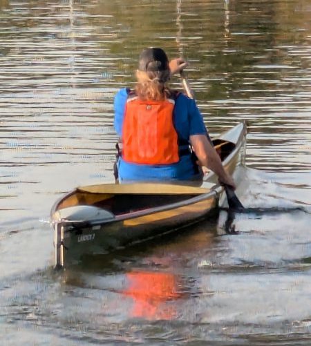 Tonight was the first time she paddled the Landick II. The photo below is here paddling away from me. She looked comfortable.