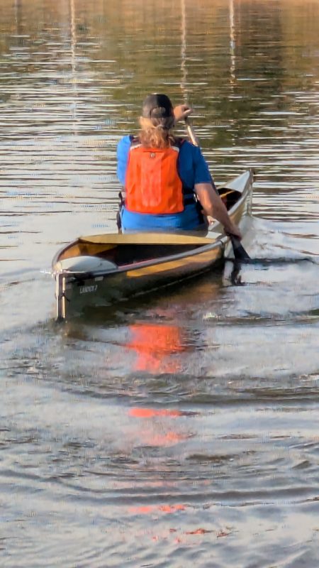 If she loved the boat, I would gladly give it up to her to go fast and I could do something else. While she did like it, she found it a bit cramped for space. She still prefers not racing solo and her trusty plastic kayak. I can’t argue with that. She’ll still race with me in a multi person boat. It was a lovely night to race with friends. I’m thrilled Danelle came out even if she didn’t take to the faster racing canoe. Maybe next time!